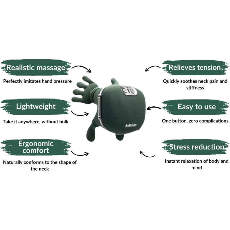 Unlike conventional devices that simply vibrate or roll, Soosiaa RelaxPro actually imitates human hands . The result: a more natural, deeper and much more effective massage.