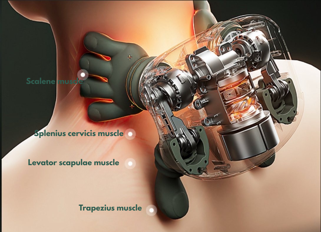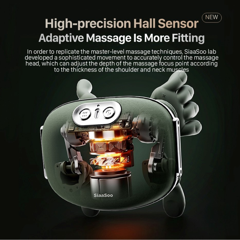 Unlike conventional devices that simply vibrate or roll, Soosiaa RelaxPro actually imitates human hands . The result: a more natural, deeper and much more effective massage.